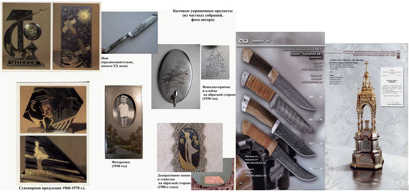 В 1970-1980 годах определились четыре основных направления развития златоустовской гравюры на стали: украшение наградного и юбилейного оружия; украшение бытовых предметов; изготовление памятных призов, наград и сувениров в честь значительных дат и событий в жизни советского государства; массовое производство настенных и настольных панно[7].